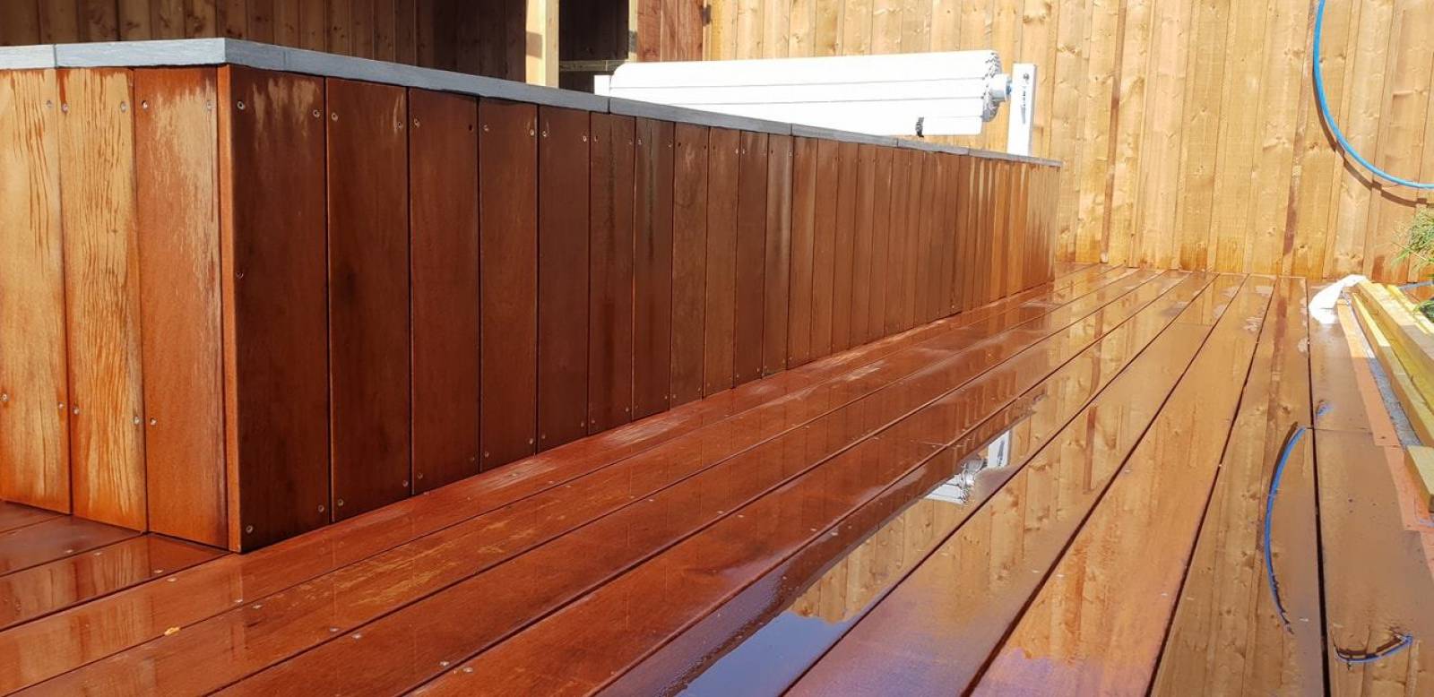 Réalisation d'une terrasse bois en Itauba pour notre clients habitant la commune de Castelnau de médoc, le projets ne fût pas si simple a réaliser car il n'y avait aucun accée et avons tout passer par la maison nous avons procéder dans un premier temps a l 'évacuation de terre en plus pour pouvoir faire nos plots béton pour y recevoir nos lambourdes en badi bois exotique ensuite la mise en place des lames de bois exotique en Itauba sont venu compléter la finalisation de ce jolie projets de terrasse bois a Castelnau de médoc